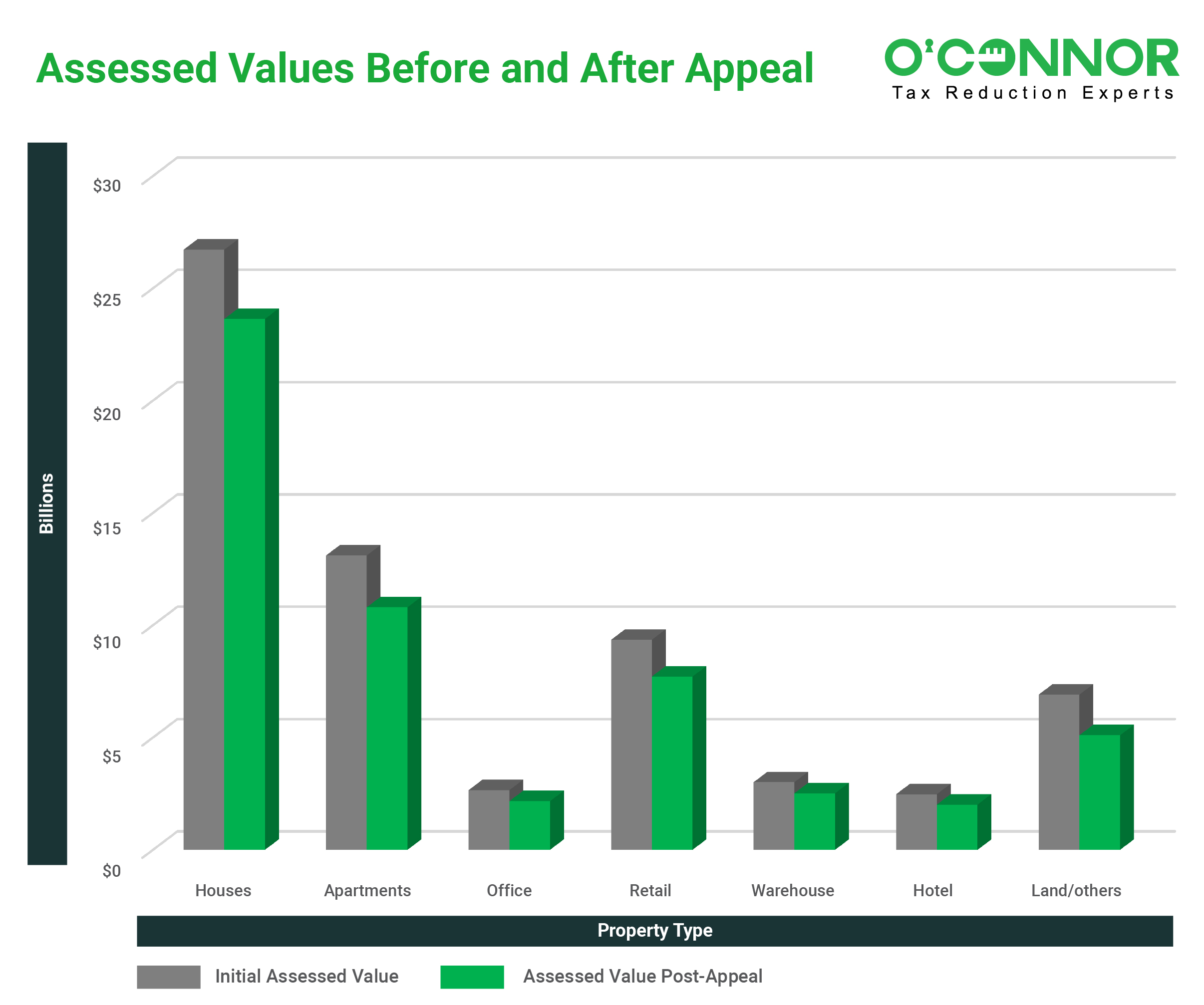 This article includes only information about accounts that result in a reduction. On average, about 40 to 60% of tax parcels in Brazos County are successful in protesting their property taxes each year. O’Connor has had the opportunity to compare the initial tax assessments released by the Brazos County appraisal district in September 2023 with the property values released after the protest hearings were completed. Observing the significant amount of tax dollars that property owners can save by challenging their values should motivate others to carefully review their annual assessments and utilize the appeal process, either by themselves or with the help of a property tax consultant.